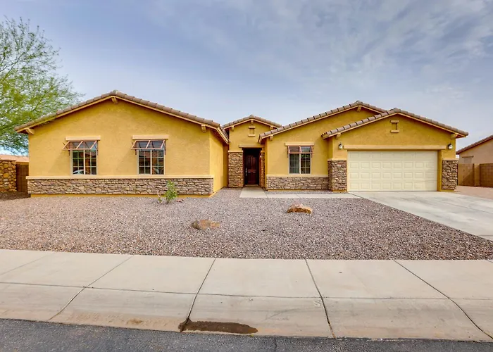 Une cuisine complète, ainsi qu'un coin repas extérieur, sont disponibles pour les repas. La restauration en libre-service sur place comprend également un four et un lave-vaisselle. La villa est accessible en voiture en 31 minutes depuis l'aéroport Goodyear de Phoenix.